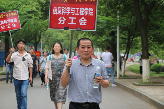 本次徒步活动自东方红广场开始环校园一周,全程约3200米,活动过程中,教职工们一路欢声笑语,气氛活跃,在和煦的春风中,让人感受到教职工“无案牍之劳形”的那份轻快愉悦。在活动路途中,校工会还精心设有服务站,为参加活动的教职工们提供了充足的物资补给。