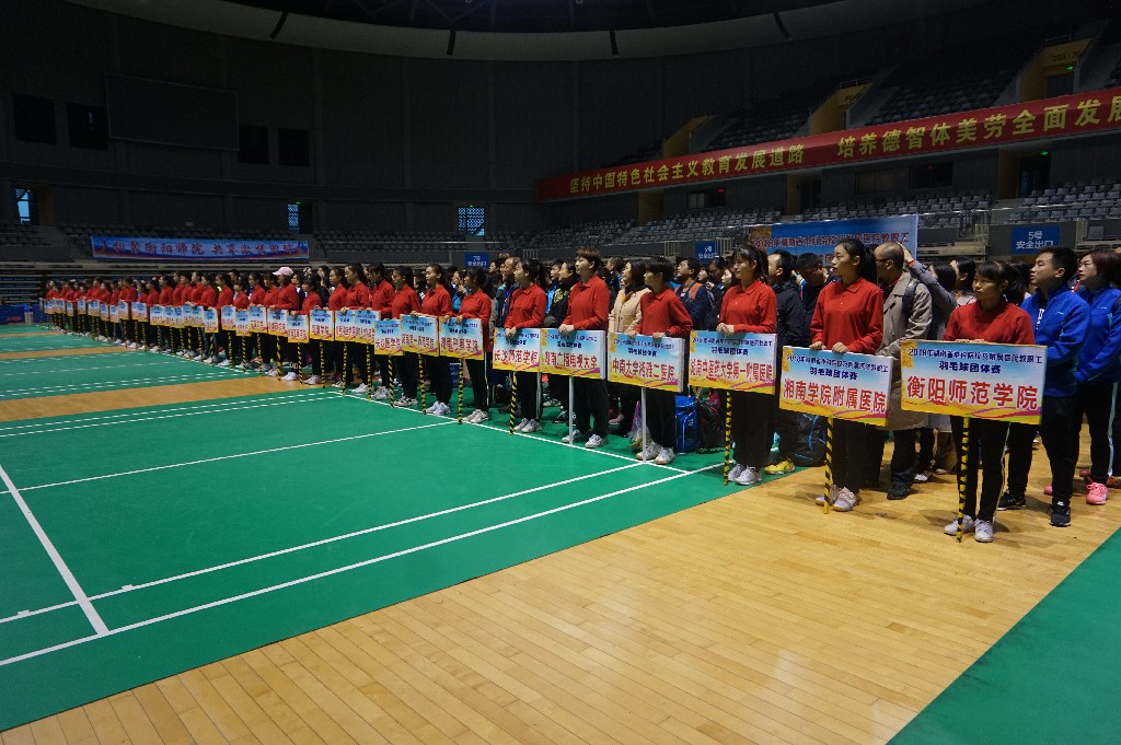2018年11月7日至9日湖南省本科院校及附属医院教职工羽毛球团体赛在衡阳师范学院举行。比赛由省教育工会主办,来自全省各地的39个本科院校及其附属医院的羽毛球代表队共400名羽坛高手云集于此。本次比赛参照国家体育局颁布的《羽毛球竞赛规则》,采用混合团体赛制。每场比赛设男子单打、女子单打、男女混合双打、男子双打、女子双打五个项目。每场比赛采用五盘三胜制,每盘比赛采用三局二胜制,每局比赛均采用15分制,运动员不能兼项。