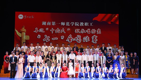 6月30日晚,由校工会组织的“喜迎十九大·欢歌献给党”庆“七一”教职工合唱比赛在东方红校区音乐剧场盛大举行。湖南省总工会党组书记徐文龙、湖南省教育工会主席高新明莅临指导,我校全体校领导参加演出。湖南省教育工会女工委主任孙晓红、湖南大学工会副主席张志军、湖南师范大学工会副主席梁蓓蓓、我校音乐舞蹈学院院长李小君、党总支书记谭顺来担任比赛评委。