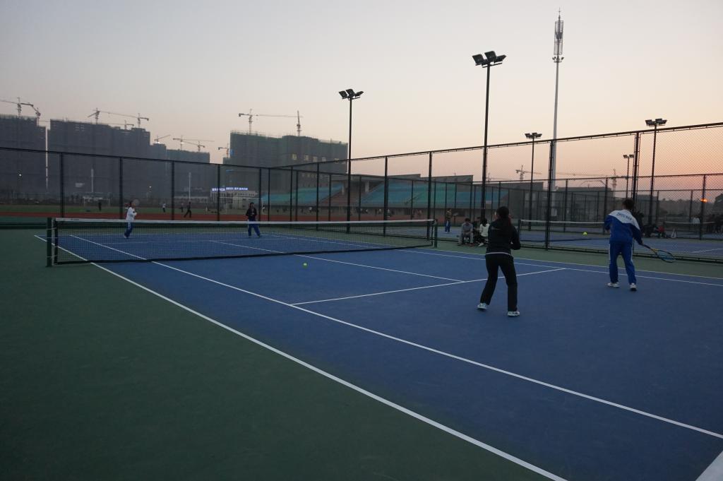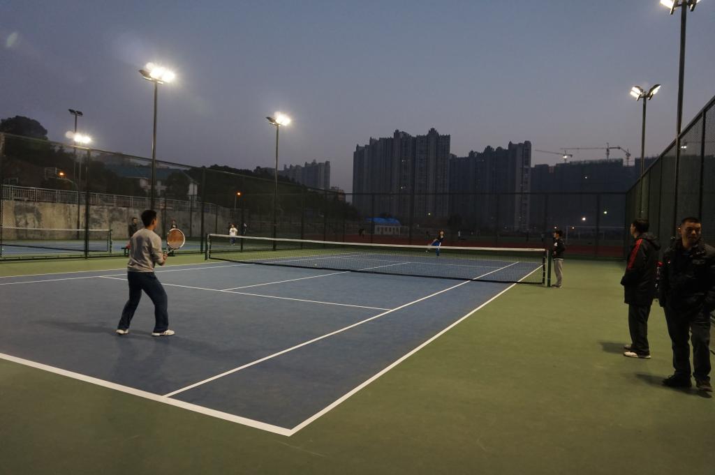 为检验学校网球教学成果,提高我校学生的网球兴趣,培养我校网球“人口”,应校网球协会要求,由校工会宣传文体部出面,邀请长沙市体校暨周南中学网球队于2014年12月29日下午6:00至8:00在我校新落成的网球场与我校师生网球联队进行了一场交流赛。