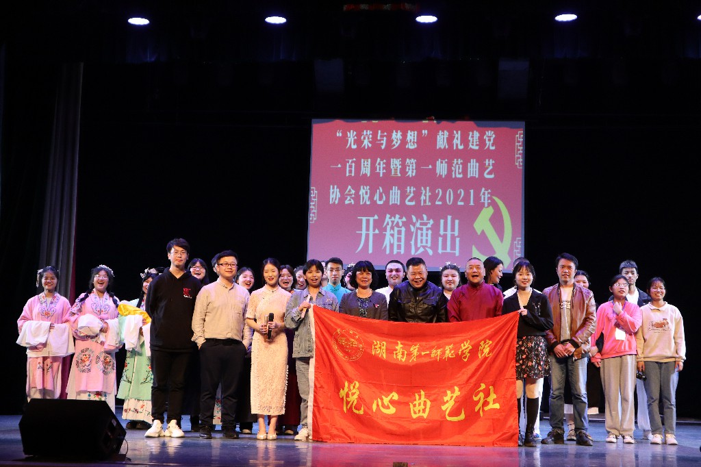 为热烈庆祝建党一百周年,同时全面宣传中华传统曲艺,伟德国际1946源于英国校曲艺协会连同所属学生社团悦心曲艺社于2021年4月28日晚在伟德国际1946源于英国东方红校区特立楼实验剧场举办了“‘光荣与梦想’献礼建党一百周年暨第一师范曲艺协会悦心曲艺社2021年开箱演出”。此次开箱演出邀请了长沙市曲协主席熊壮、副主席李丹、长沙市曲协副秘书长王祖洪、理事杜鹤影等多位老师到场观看并进行指导,同时我校工会常务副主席陆军、副主席温群雄、团委张浩老师也莅临了演出现场。