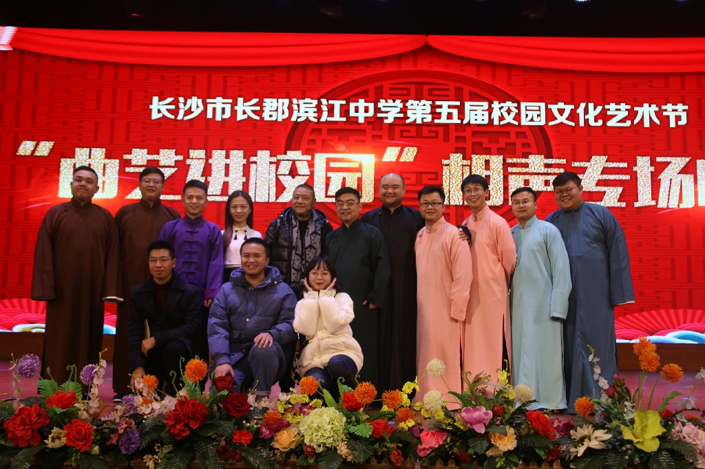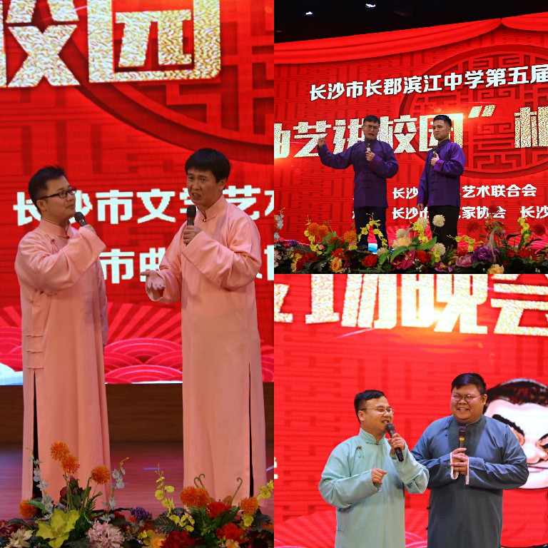2020年12月7日晚七点,我校曲艺协会会长张志华老师带领“悦心曲艺社”的四位干部干事共同前往长沙市长郡滨江中学,应长沙市曲艺家协会邀请观看长郡滨江中学第五届校园文化艺术节暨长沙市曲协“曲艺进校园”相声专场晚会,并与演职人员进行了深入的交流学习。