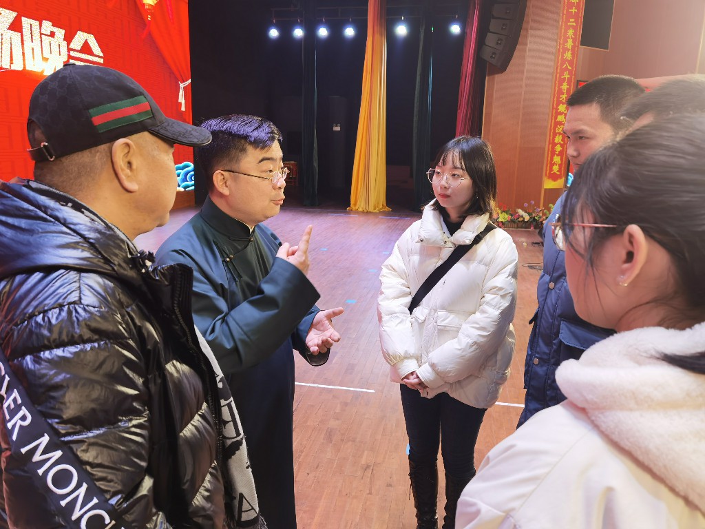 晚会结束后,长沙市曲艺协会副主席李丹组织部分演员与悦心曲艺社的干部干事们座谈。艺术家们对同学们进行交流指导、答疑解惑。李丹副主席对大学生曲艺社团给予了高度肯定,以自身为例指出:曲艺社要长远发展应首先提高个人能力,形成自己的舞台风格,在此基础上再积极创作大学生生活题材的曲艺作品。鼓励同学们要多练多演,让上台表演常态化。最后张志华老师总结:曲艺社应多多发现、吸收、培养相关人才,形成个人代表作品,在学、练、演中磨练自己,逐步提高社团知名度和影响力。