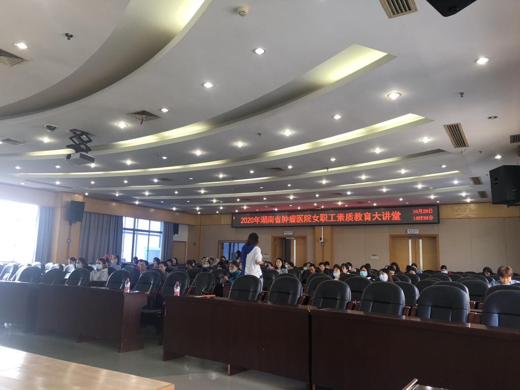 10月28日下午,湖南省肿瘤医院工会举办了“2020年女职工素质教育大讲堂”活动,湖南省女职工素质教育大讲堂讲师团成员——我校副教授向婷应邀参加活动,做了题为“习近平的奋斗幸福观” 的讲座。
