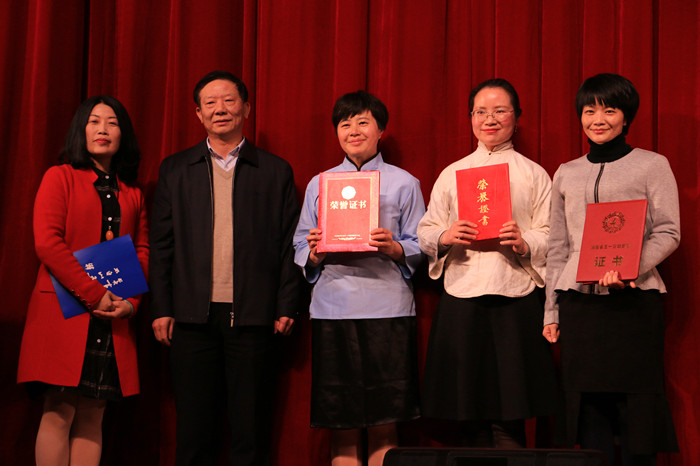 此外,在节目表演过程中,湖南省教育工会主席高新明为我校荣获2015年度湖南省师德师风先进个人、湖南省五一劳动奖章的肖弋老师,荣获2015年度“最美芙蓉花”摄影大赛二等奖、芙蓉百岗明星称号的张容舟老师,荣获2015年度芙蓉标兵岗称号的第二附属小学颁发了证书。