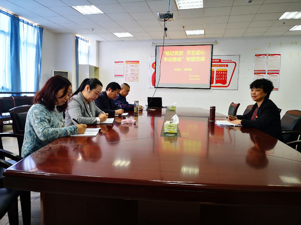 11月8日上午,工会党支部书记温群雄在图书馆三楼会议室,为全体党员上了一堂“铭记党史不忘初心、牢记使命”主题教育专题党课。