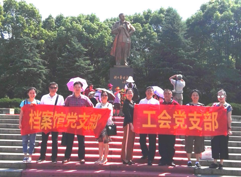 为进一步加强工会党支部党员的党性修养,增强党支部的凝聚力、战斗力和号召力,2018年5月25日,工会党支部和档案馆党支部联合组织了一次意义深刻的“重温革命历史, 贯彻十九大精神”的党员活动,全体党员赴刘少奇故居、纪念馆进行参观学习。
