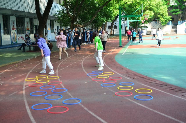 教师会议后,大家纷纷来到操场,时而轻如飞燕般跳绳,时而身姿矫健般奔跑,时而敏捷灵动地踢毽子,时而刚劲有力地投篮,个个精神抖擞、激情飞扬,再和上此起彼伏的掌声和加油声,让沉寂已久的校园顿时沸腾起来。