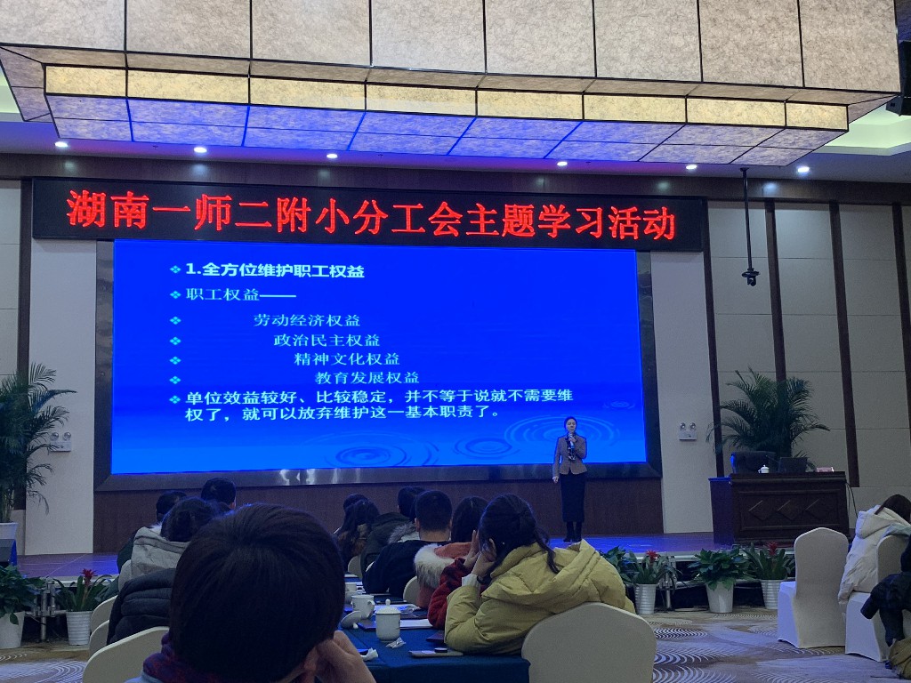 为进一步加大教师培训力度,不断提高我校教师队伍的综合素质,2020年1月12日,学校分工会特邀请湖南省总工会干部学校戴春副教授,为我校教师做了“和谐的工作与人的全面发展”专题讲座。
