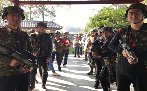 10点,教师们抵达目的地,宽阔的湖面,清新的空气,活泼的小动物们令大家顿时精神抖擞,尽情的在这天然氧吧中运动。教练宣布比赛规则,崭新的射击设备、统一的迷彩服、老师们摇身一变成为了野战战士,两队队员士气高涨,战斗一触即发。“战斗开始”一声令下,奔跑的身影,尽情的呐喊,仿真的射击,比赛现场成了一片绿色海洋。经过7轮激战,红队获得了比赛的胜利。中餐过后老师们开展击鼓颠球、齐心协力等团体素质拓展项目,赛场上充满欢声笑语,加油呐喊声不绝于耳。