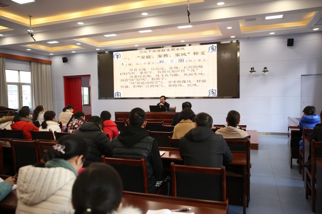 12月18号下午,我校全体老师在五楼多功能报告厅认真聆听长沙师范学院周智湘部长关于“习近平论家庭家教家风”讲座。周部长从四个方面诠释了“家庭家教家风”,让全体老师受益匪浅。