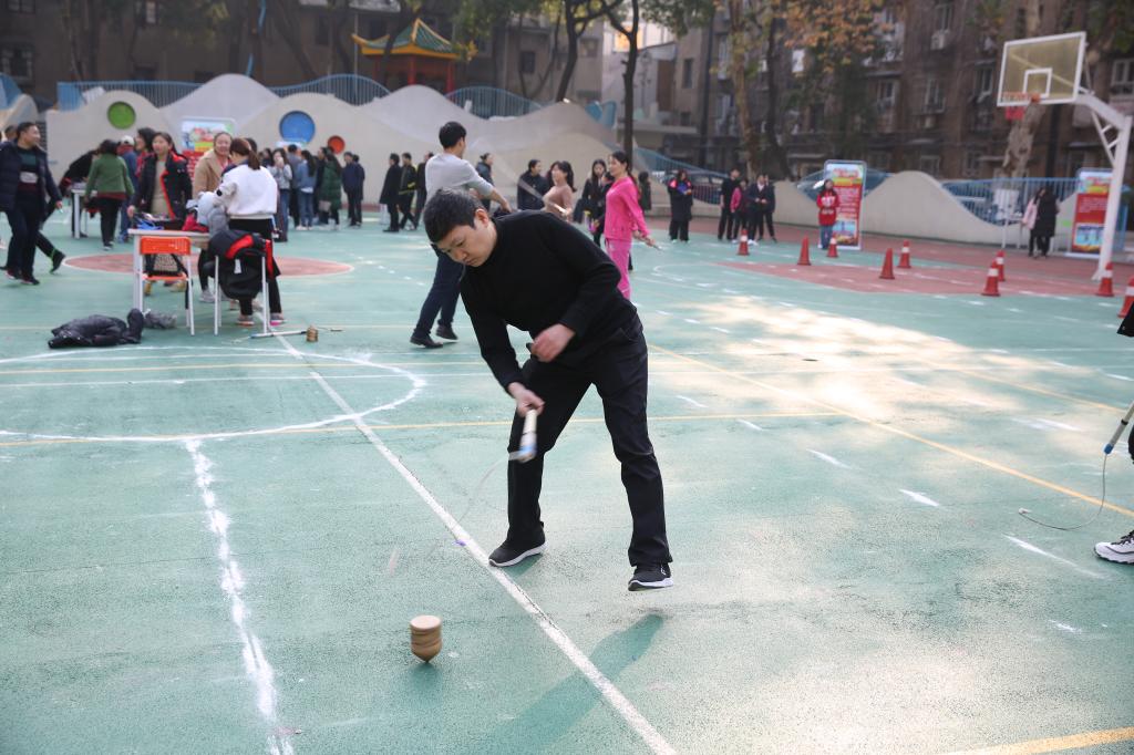个人项目中的滚铁环、踢毽子、打陀螺、袋鼠跳等大多是运动员们儿时常玩的游戏。其中,以滚铁环的场面最为热闹——枪声一响,只见运动员们卯足了劲儿,手里拿着铁钩,推着铁环,猫着腰在跑道上奔跑。有的运动员一看就是练了童子功的,那真是功夫了得。有的呢,铁环不仅比他跑得还快,还像个撒野的孩子一个劲地向跑道外跑去。叮叮咚咚的铁环声、欢笑声像一曲美妙的乐曲,把运动员和观众们带回了难忘的童年时光。