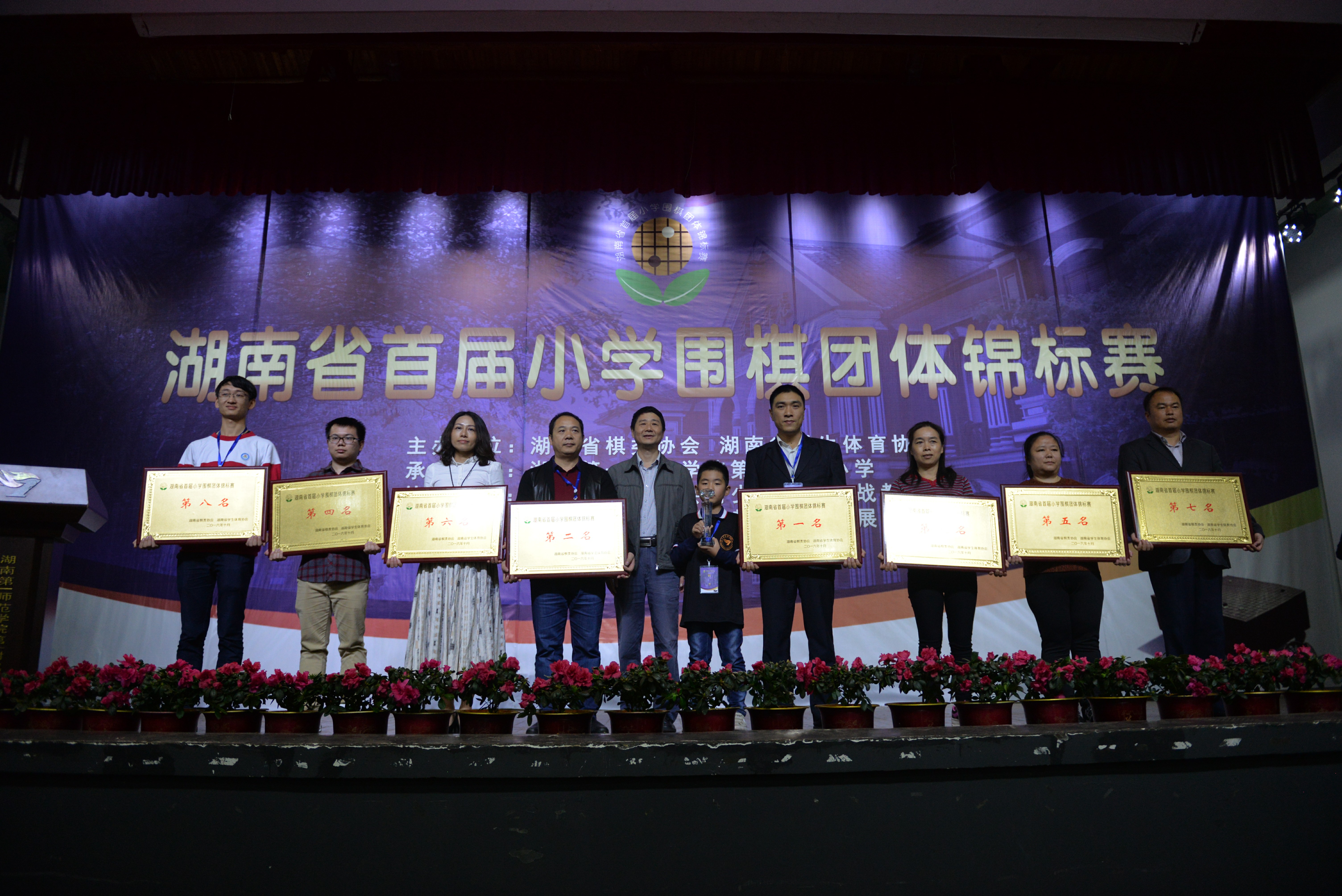 来自湖南9个市的24支代表队的96名棋童经过7轮激烈较量,由刘联王盼5段、王艺卓5段、傅豪宇4段、谭孟阳4段组成的我校第一附属小学队7战全胜夺得团体冠军,荣获团体2至5名的队依次是:邵阳市大祥区滑石小学、常德市武陵区北正街小学、中南大学第二附属小学、益阳市南县南洲实验小学。