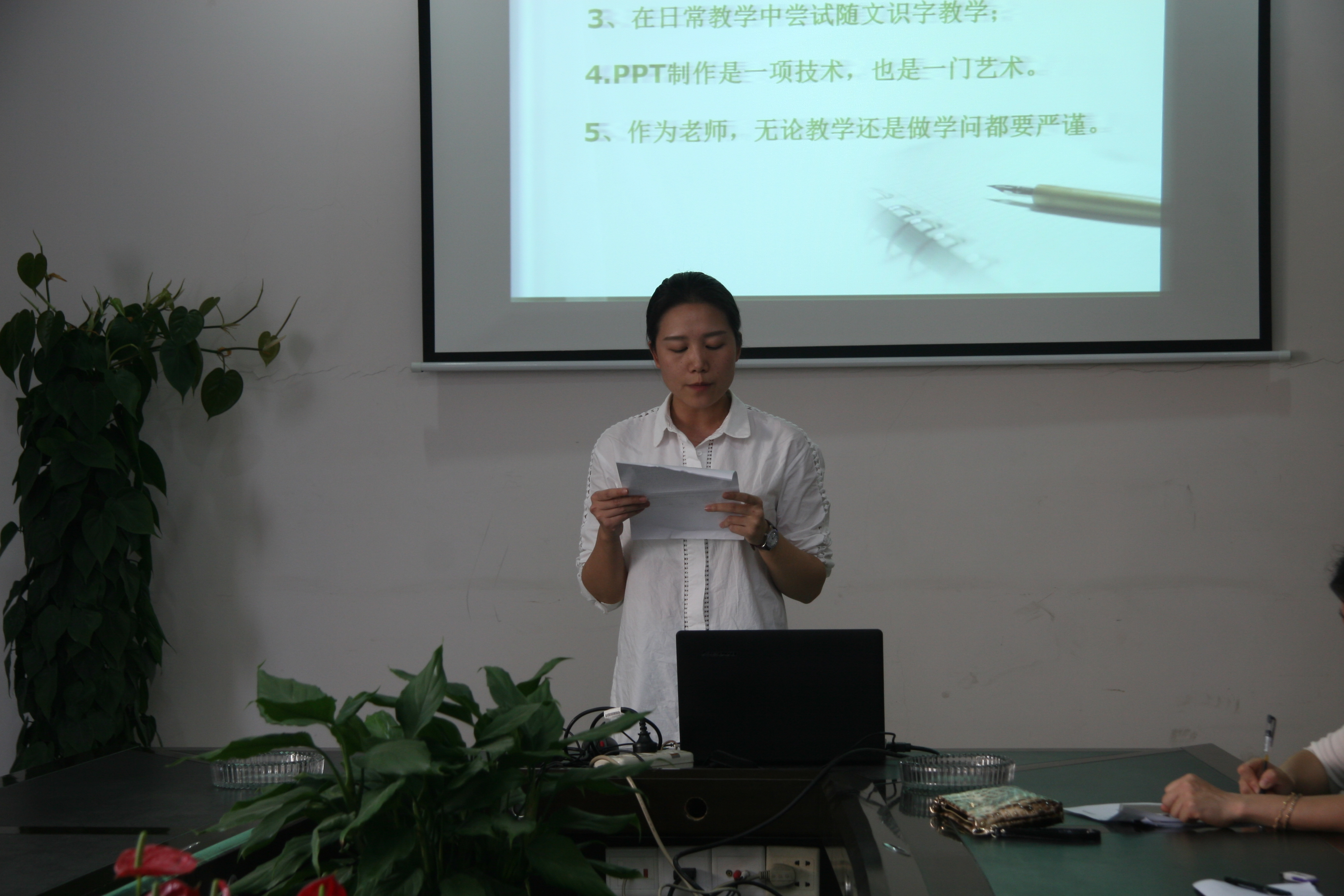 老师们的发言结束后,汪校长肯定了老师们在比赛中付出的努力,同时语重心长地告诫大家:要培养自己的“大家”风范,立足平时的课堂教育教学,积累经验,查找不足,弥补短板,做一个有准备的有心人。章校长希望大家能用自己的行动诠释“成长”的含义,指出成长就是把每一件小事做精致、做完美!希望青年老师们做一个勤奋的人,做一个有思想的人,有一个有个性的人!最后,章校长更是指出了此次反思会的重要意义,取得成绩固然可喜,比赛失败也不可怕,但更重要的是用心反思,不断成长!