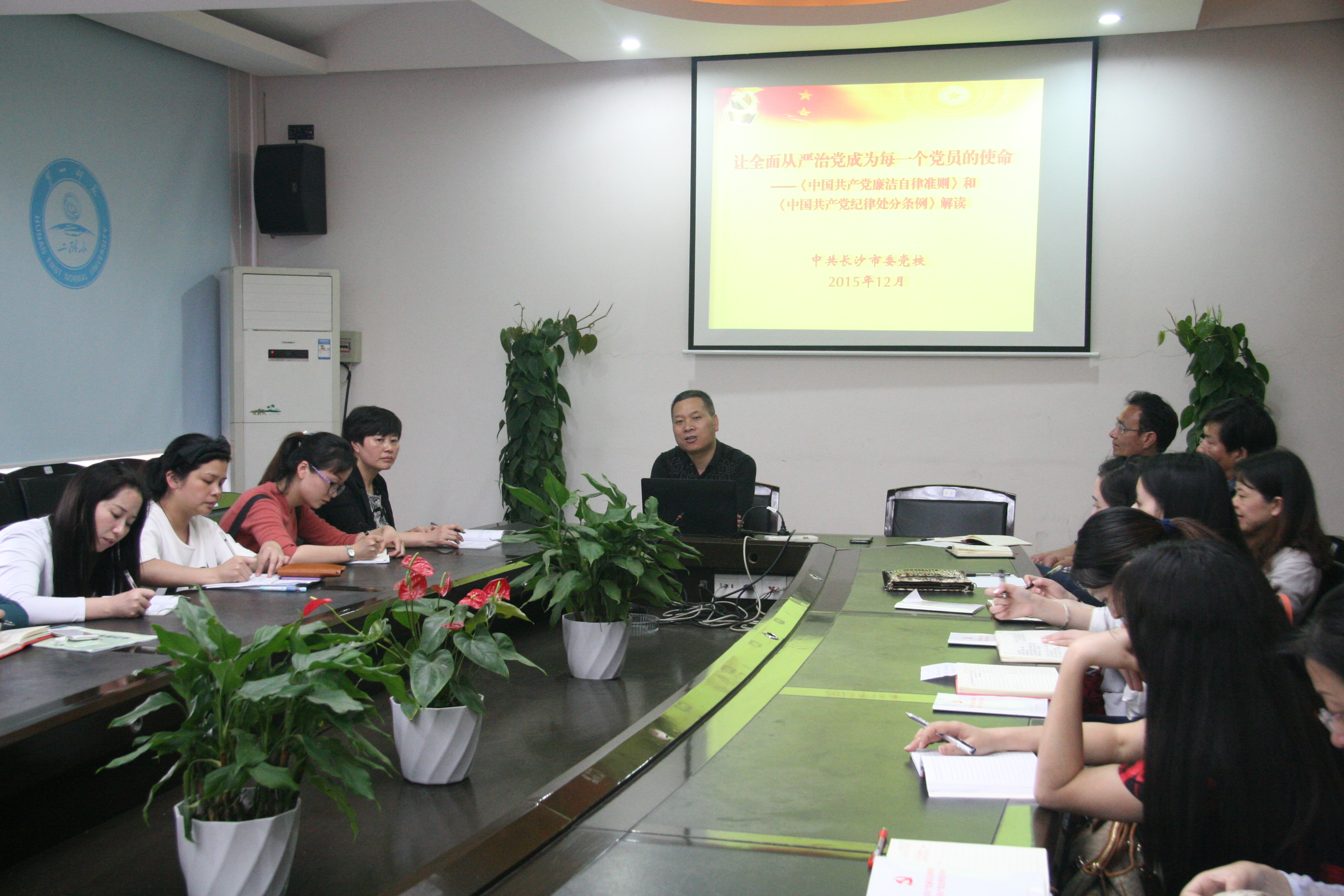2016年5月4日下午,我校请来了长沙市委党校曹习华教授,给全体党员上了一节生动的党课,给大家解读了《中国共产党廉洁自律准则》、《中国共产党纪律处分条例》。