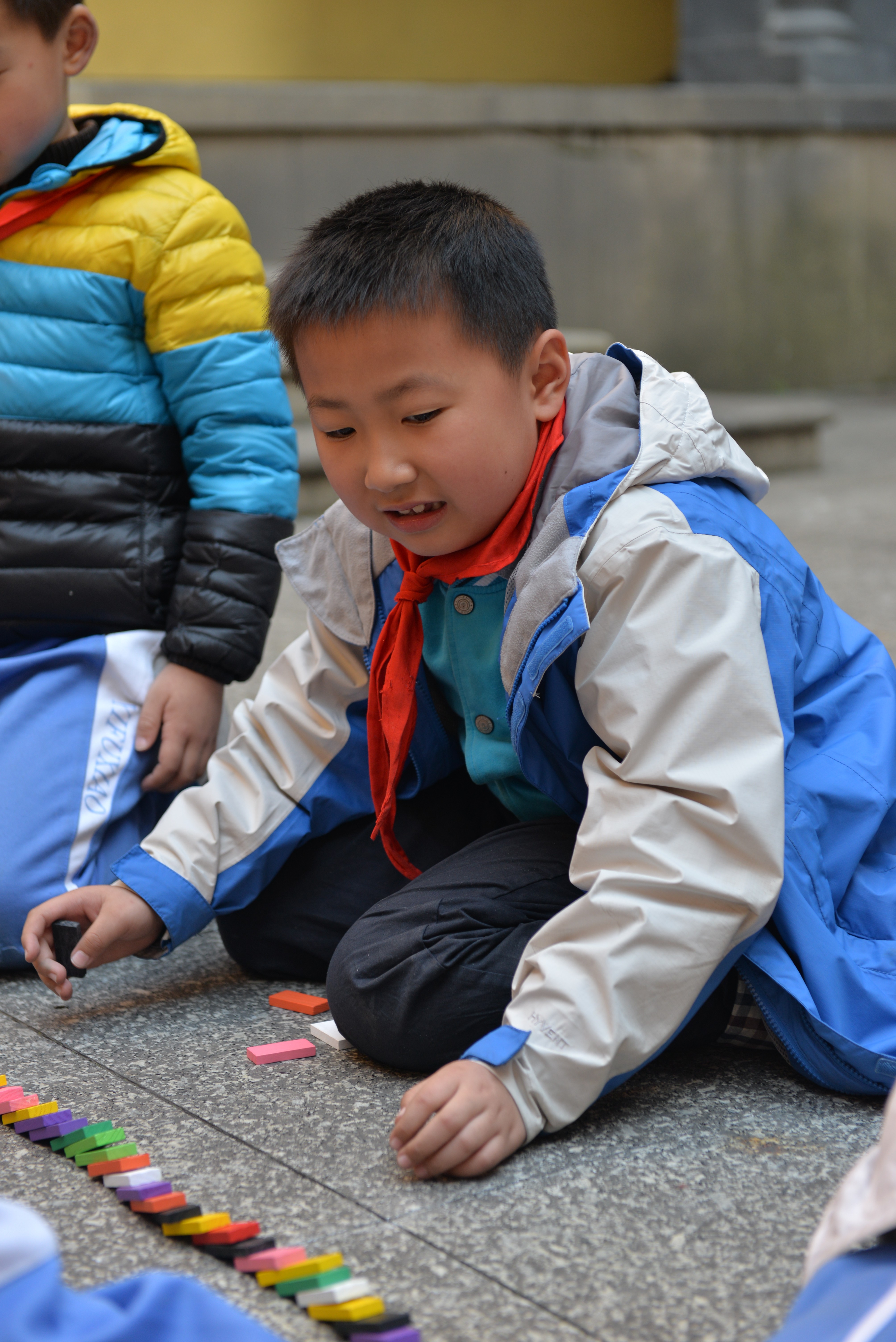 五颜六色的多米诺骨牌,勾勒着孩子们绚丽多彩的童年,也仿佛在告诉孩子们:只有经过无数次失败的经历,才会变得成熟,无限地接近成功,直到最终走向成功。
