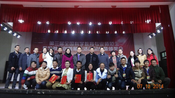 在 12月5~7日第三届全国科学教育专业师范生教学技能创新展示活动中,教育科学学院科学教育专业四名学生参加比赛,全部获得特等奖。这一成绩的取得,与校领导大力支持,学校各部门通力配合分不开,同时也与科学教育专业团队成员的辛勤努力分不开。科学教育工会小组的老师们,把他们的主要精力放在教育教学上,在培养学生成长成才方面下大力气。为了参加这次比赛,他们组织专业学生进行预选,复赛。确定了参赛选手后,老师们加班加点,手把手地给学生进行指导。在展示活动中,科学教育教研室全体老师参与了活动的组织工作,他们严密的组织,周到的服务得到了与会代表的高度评价。