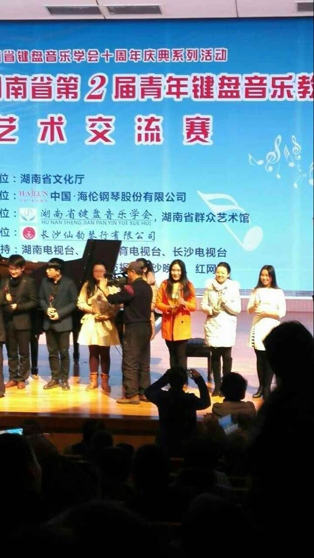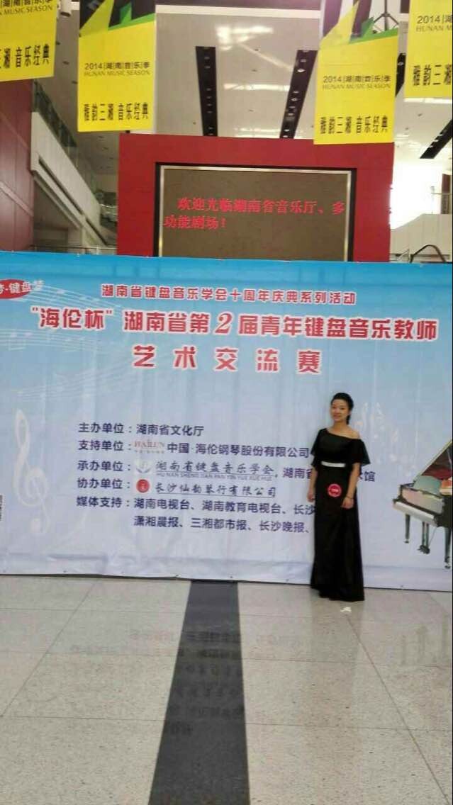 12月22日,由湖南省文化厅主办,省键盘音乐学会、省群众艺术馆联合承办的“海伦杯”湖南省第2届青年键盘音乐教师艺术交流赛在湖南音乐厅举行,来自全省各地近200名青年键盘音乐教师汇聚长沙同场交流、切磋琴艺。我校周敬雅老师参加了钢琴组的角逐,精彩演奏了一曲李斯特《匈牙利狂想曲12》,凭借其精湛的技艺从第二赛场55位选手中脱颖而出,获得了第三名的优异成绩,并荣获大赛“最佳艺术表演奖”。
