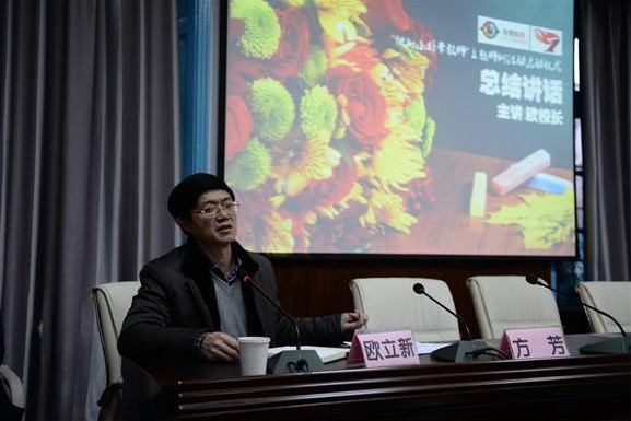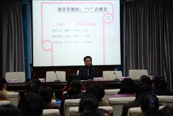 启动仪式由学校工会主席余运群副校长主持,方芳副校长宣读活动方案。特别荣幸的是我们还邀请到《湖南教育》杂志、非常教师网主编黄耀红博士到活动现场为我们全体教师作了精彩的专题讲座《平常心·非常路》。黄博士从“非常”与“非常教师”的诠释入题,倡导教师在自己的专业发展道路上做出特色、彰显个性,从而实现职业教师的生命价值。接着用一个个生动鲜活的例子、妙趣横生的话语引领我们学会坚守,始终如“一”,去做一名非常教师。一个半小时里,黄博士的学养与激情感染着我们每一个聆听者、学习者,整个活动现场气氛热烈,笑声不断,但热烈与笑声的背后留下的是黄博士引发给我们的启迪与思考。最后,欧立新校长作总结发言,语重心长而饱含深情,给予我们极大的鞭策与鼓舞。