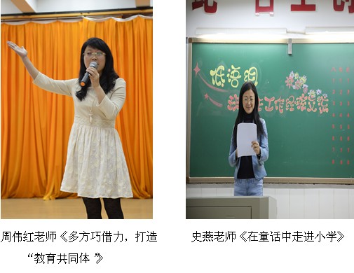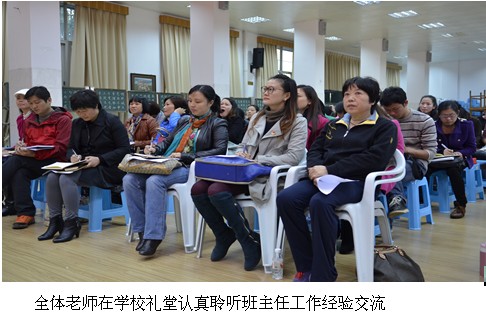 周伟红、史燕、李素娟、胡冉、戴雪琴、刘樱六位班主任,在低、中、高教研组的经验交流时,经过大家的评议,被推荐参加学校的交流。这六位老师把自己从事教育工作以来,在班主任工作方面的体会和做法与大家进行了交流。周伟红老师的《多方巧借力,打造“教育共同体”》让大家感受到周老师的智慧;胡冉老师的《学会等待 收获欣喜》看出了一个年轻教师对特殊学生的包容与大爱;戴雪琴老师的《让自己的心永远住在学生的童年里》彰显了戴老师的浪漫情怀;史燕老师的《在童话中走进小学》让我们佩服史老师在幼小衔接方面的匠心独运;李素娟老师的《享受工作 收获幸福》凸显了李老师的“学生观”;刘樱老师的《定位与换位》让人看到了温婉的刘老师是那么善解人意。