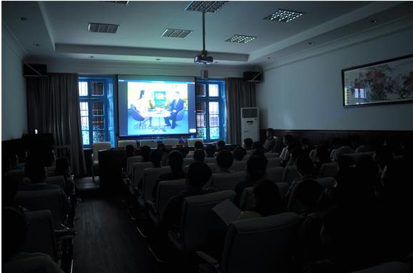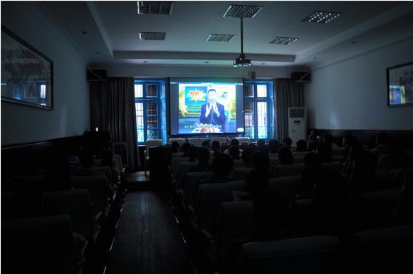 全体教师认真观看金正昆教授讲座的视频