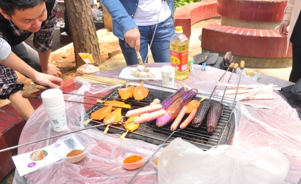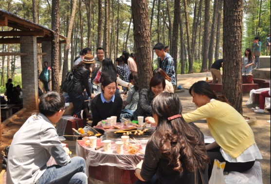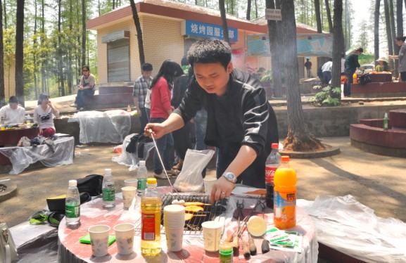 在阳光明媚的暖春,鲜花尽放的湖南省森林植物园,来自两个单位的、近三十名年轻职工正在开心地进行烧烤野餐:租借炊具、生火切菜、清洗瓜果等食材、准备油盐等调料……每一项工作大家都是那么的认真、每一个任务小伙子们都能那么的担当、每一件事情姑娘们都会那么的细致……大家配合地非常默契。金灿灿的玉米、香喷喷的茄子、油淋淋的火腿、甜蜜蜜的丸子、脆蹦蹦的面包片……每一样食物都映衬着小伙子的勤劳、姑娘们的贤淑。