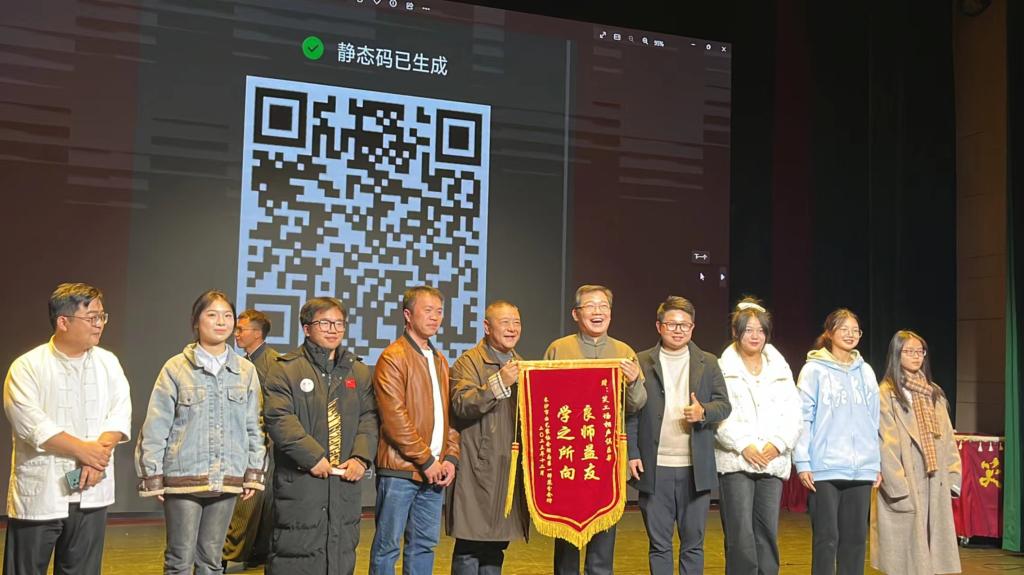在演出结束后,校曲协、悦心曲艺社师生为大兵老师领衔的“笑工场”相声俱乐部送上“良师益友 学之所向”的锦旗,以表示感谢与敬意。