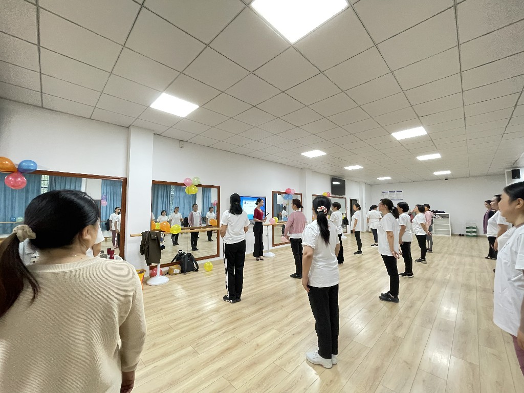 接下来,妍美形体礼仪的首席导师晏婷老师给老师们带来了“形体塑造、优雅仪态”公益讲座。晏婷老师的讲座没有空洞的说教,她讲解人的颈、肩、腰、胯、臀、腿等身体的每一个部位都可以管理。她用玲珑曼妙的身姿轻盈舒展演示,绵言细语讲解和手把手的指导。 接近两个小时的讲座,她教老师们如何练颈、肩、腰、胯、臀、腿。她说只要坚持,老师们都能重塑婀娜身姿,展现优雅的仪态和良好的精神面貌。晏婷老师还教全体老师做了《拍拍操》和《幸福快车》形体操。会员们认真学习,接受能力很强,本应两至三天才能学会的,一两个小时就学会了,得到了指导老师的夸奖。