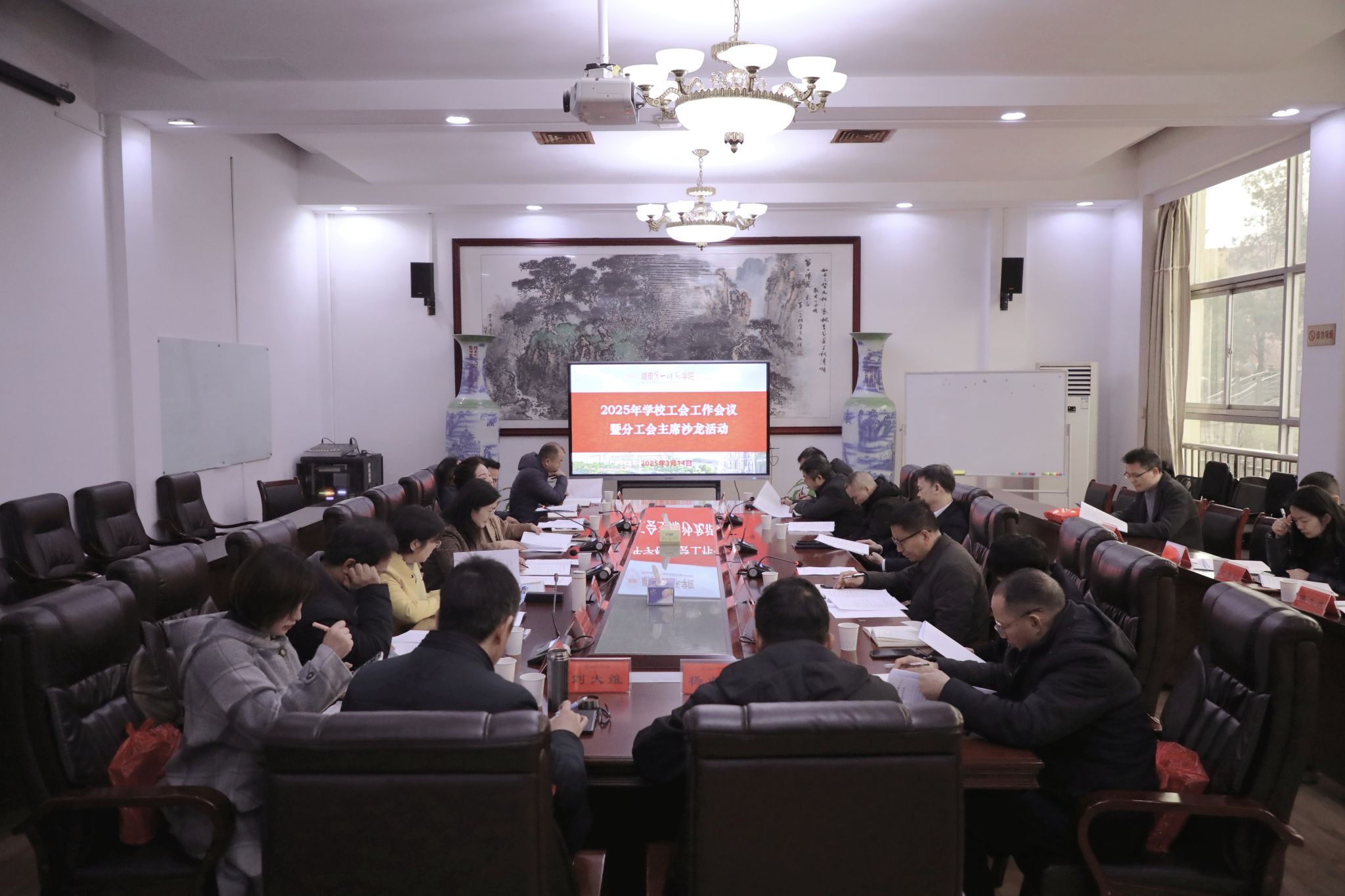 2025年3月14日上午,校工会在数学与统计学院会议室召开2025年工会工作会议,副校长、工会主席蒋蓉出席并讲话,各分工会主席、专职工会干部参加会议,会议由校工会常务副主席袁向荣主持。